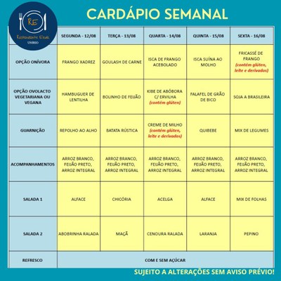 Cardápio do Restaurante Escola de 15 a 19/12/25 30/11/2025