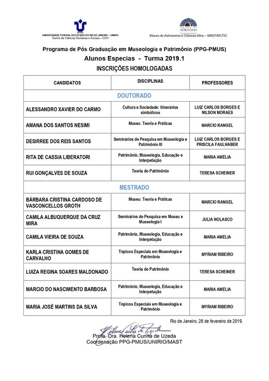 ALUNOS ESPECIAIS 2019-1: INSCRIÇÕES HOMOLOGADAS