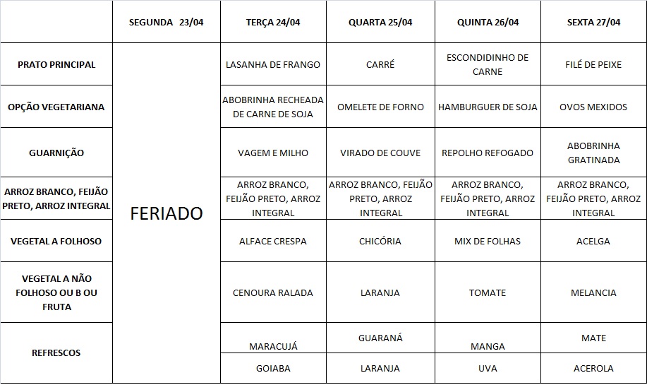 Você está aqui: Página Inicial / Nutricao-prae-corrigido / Cardápios RE / Cardápios RE PUPO / 23-04 a 27-04-18