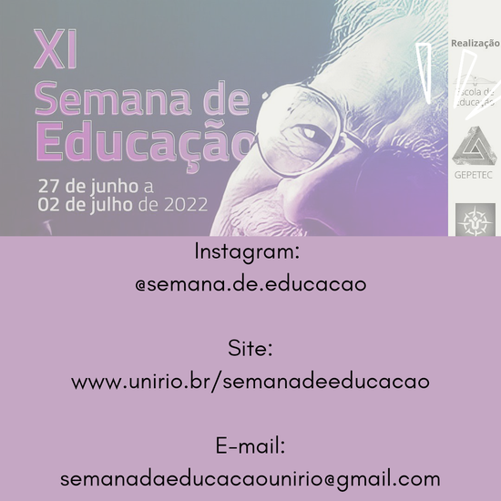 Outras informações estão disponíveis na página http://www.unirio.br/semanadeeducacao.