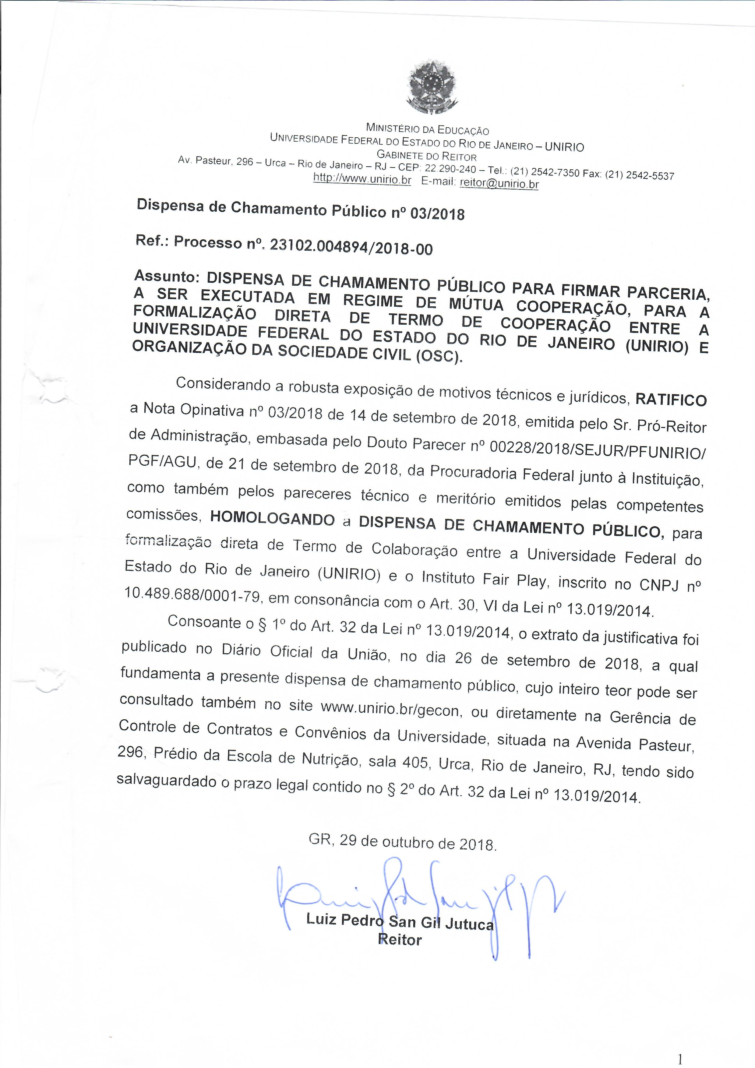 2018 - Dispensa de Chamamento Público - PROJETO EDUCARTE