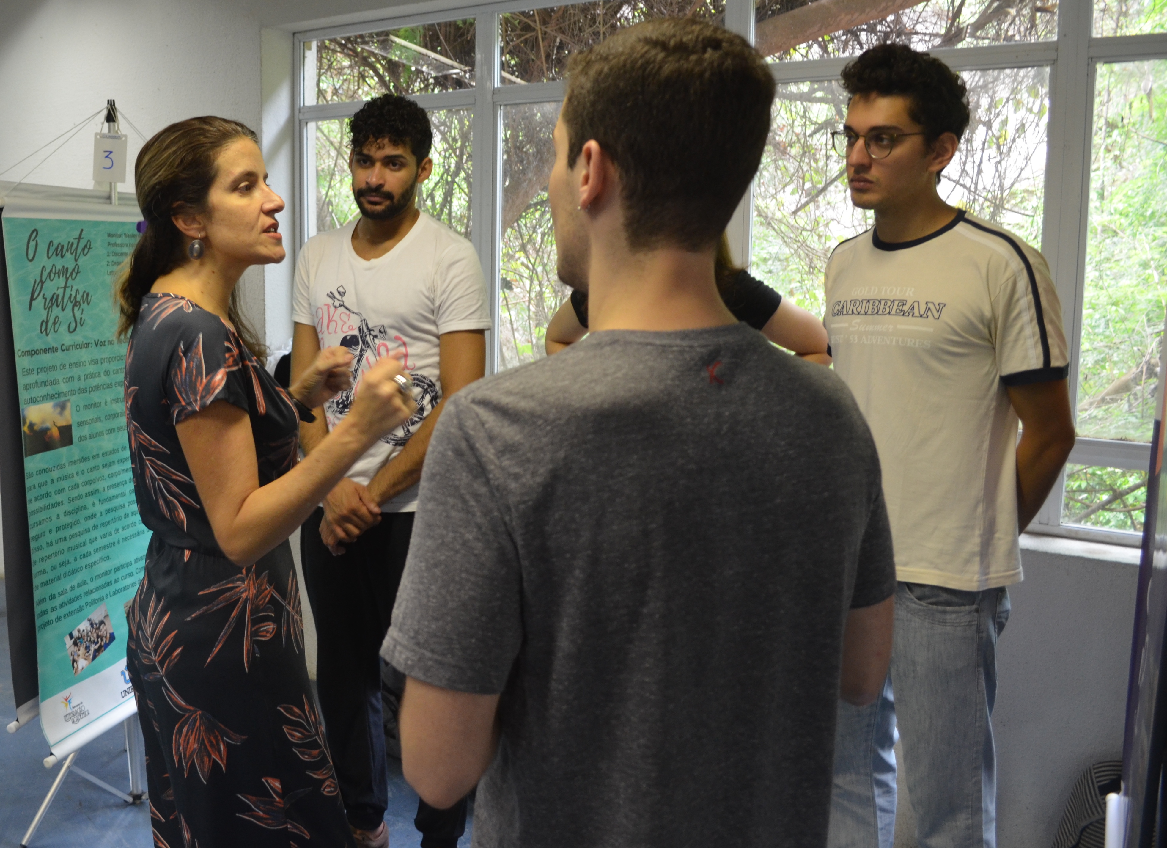 Apresentação de pôster durante a Semana de Ensino de Graduação (Foto: Comso)