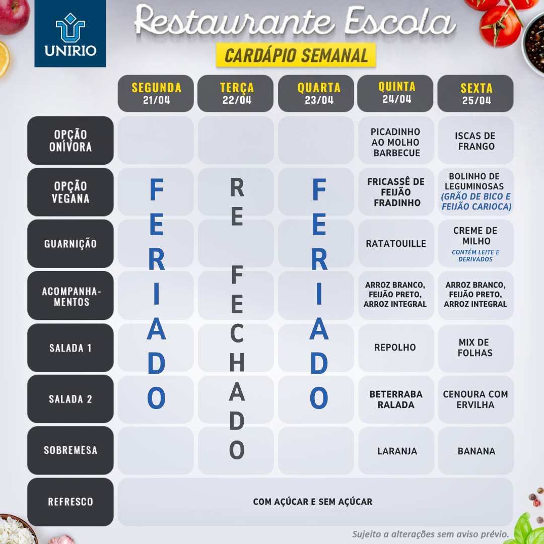 Restaurante Escola terá seus horários alterados durante a greve docente, a partir de 06/05/24. Confira! 06/05/2024