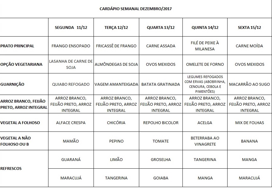 Você está aqui: Página Inicial / Nutrição PRAE(erro) / Cardápios RE PUPO / 11-12 A 15-12-17