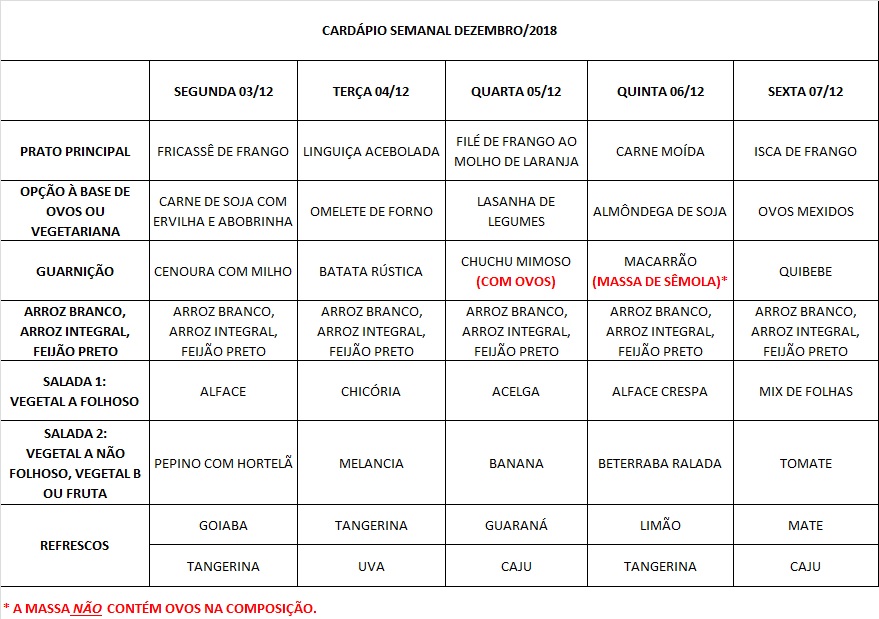 Você está aqui: Página Inicial / Nutrição PRAE(erro) / Cardápios RE PUPO / 03-12 A 07-12-18