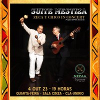 No dia 04/10/2023 será apresentada a peça Suíte Mestiza, Zeca y Chico in concert, que faz parte do projeto NEPAA Itinerante, às 19h, na Sala Cinza. Em seguida, será realizada uma Roda de Conversa e lançamento dos livros Outro Teatro: tradição, performance e arte pública e Iniciação ao Candomblé, ambos de autoria do professor Dr. Zeca Ligiéro.