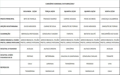 Você está aqui: Página Inicial / Nutrição PRAE(erro) / Cardápios RE / 23-10 a 27-10-17 modif.