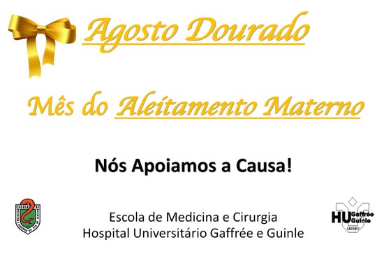 Ao longo de todo o mês, a Escola de Medicina (EMC) e Cirurgia e o Hospital Universitário Gaffrée e Guinle (HUGG) vão realizar atividades e compartilhar informações sobre o aleitamento materno com docentes, discentes, técnico-administrativos e usuários dos serviços de saúde. As ações serão promovidas por meio da disciplina curricular e do serviço de pediatria.