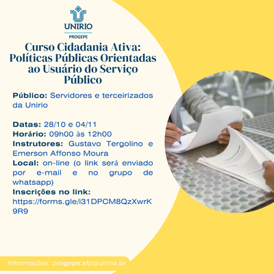 Inscrições abertas para o Curso Cidadania Ativa: Políticas Públicas Orientadas ao Usuário do Serviço Público