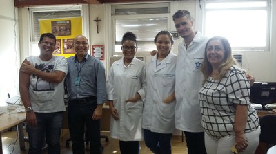 O Prof. Dr. Carlos Roberto Lyra da Silva, um dos responsáveis pela equipe da Fábrica de Cuidados, acompanhou os alunos de enfermagem que participam do projeto de extensão: Mahanny de S. Anizio, Karoline Mendes Linhares e João Pedro Pimentel durante a aplicação das 68 doses.