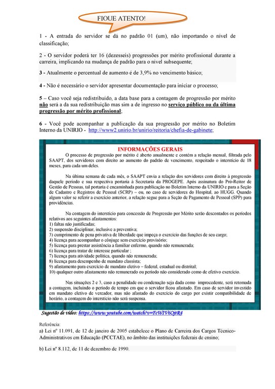Mais informações poderão ser obtidas pelo e-mail progepe.sast@unirio.br ou pelo telefone (21) 2233-1743.
