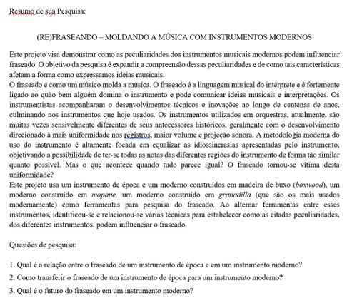 10h às 12h – Apresentação da pesquisa doutoral intitulada “(Re) fraseando – Moldando a música com instrumentos modernos (SVL)