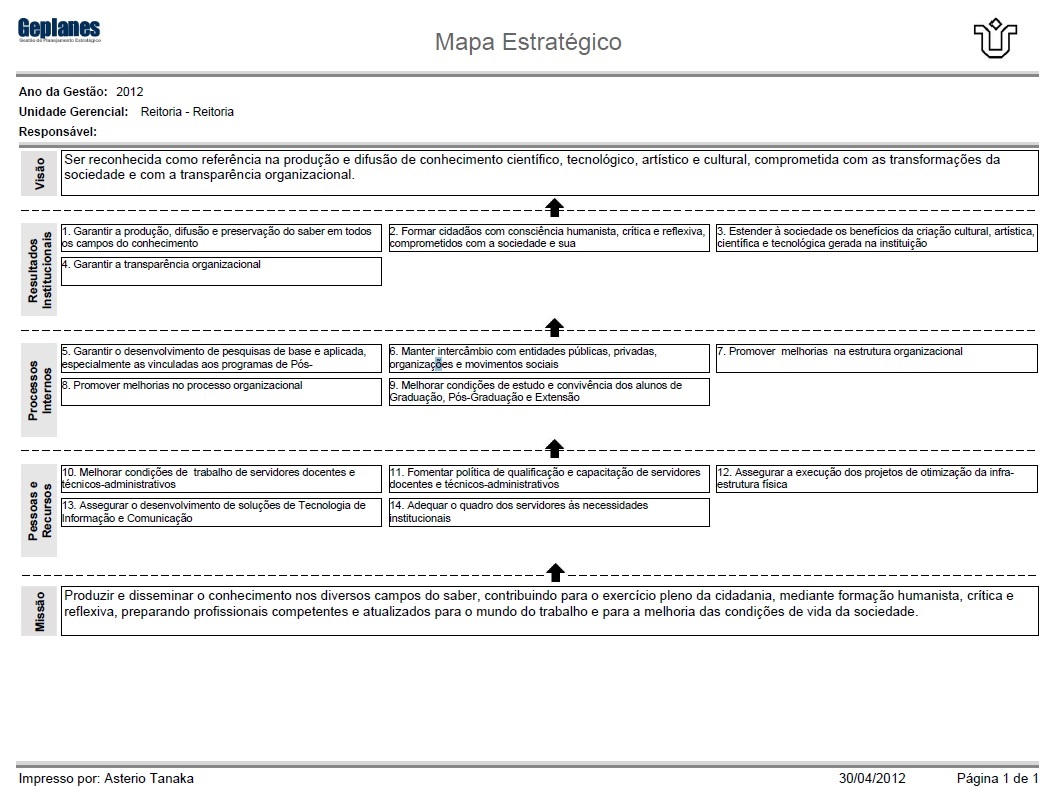 O Mapa Estratégico da UNIRIO resume o referencial estratégico do PDI 2012-2016.