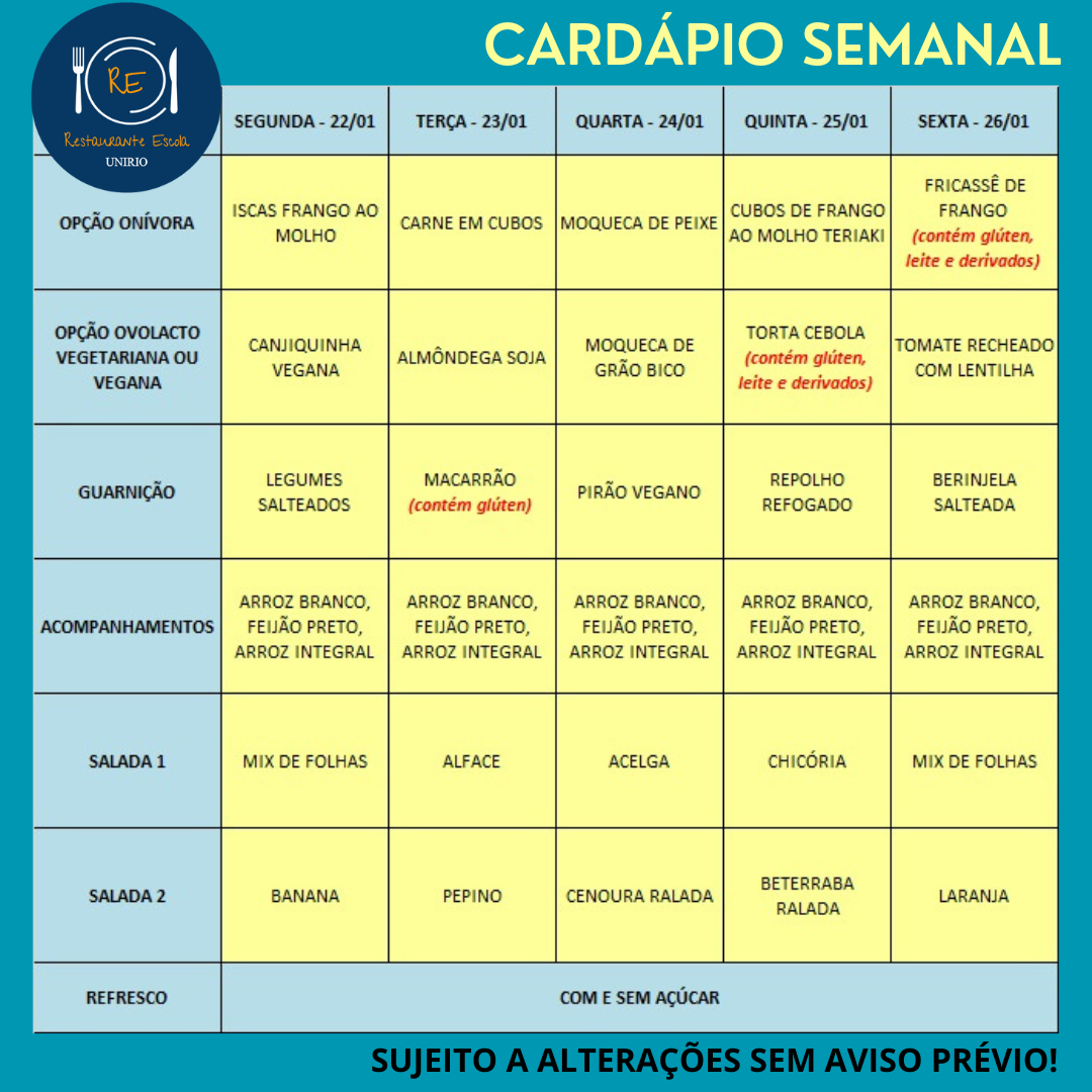 Cardápio do Restaurante Escola de 15 a 19/12/25 30/11/2025
