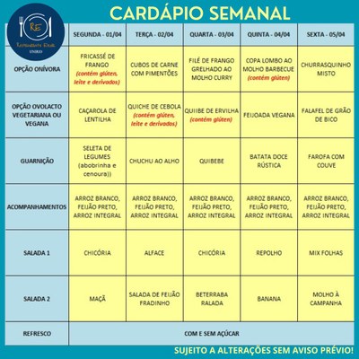 Você está aqui: Página Inicial / Nutrição PRAE(erro) / Cardápios PUPO 2024 / 01-04 a 05-04-24