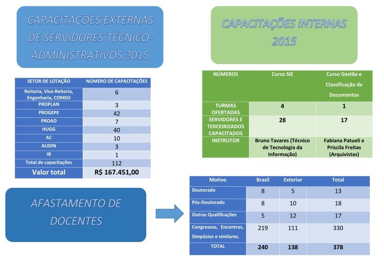 O Setor de Formação Permanente (SFP), da Pró-Reitoria de Gestão de Pessoas (Progepe), disponibilizou as ações em números desenvolvidas pelo setor no ano de 2015, como: Programa de Incentivo à Qualificação de Servidores Técnico-Administrativos (PRIQ); Programa de Incentivo à Capacitação dos Servidores em Idiomas Estrangeiros (PRIC-IE); Incentivo à Qualificação; Progressão por Capacitação; Capacitações Internas e Externas; Projetos Especiais e  UNIRIO de Braços Abertos. A divulgação tem como objetivo garantir a transparência organizacional, prerrogativa do serviço público e também do Plano de Desenvolvimento Institucional (PDI) da Unirio.