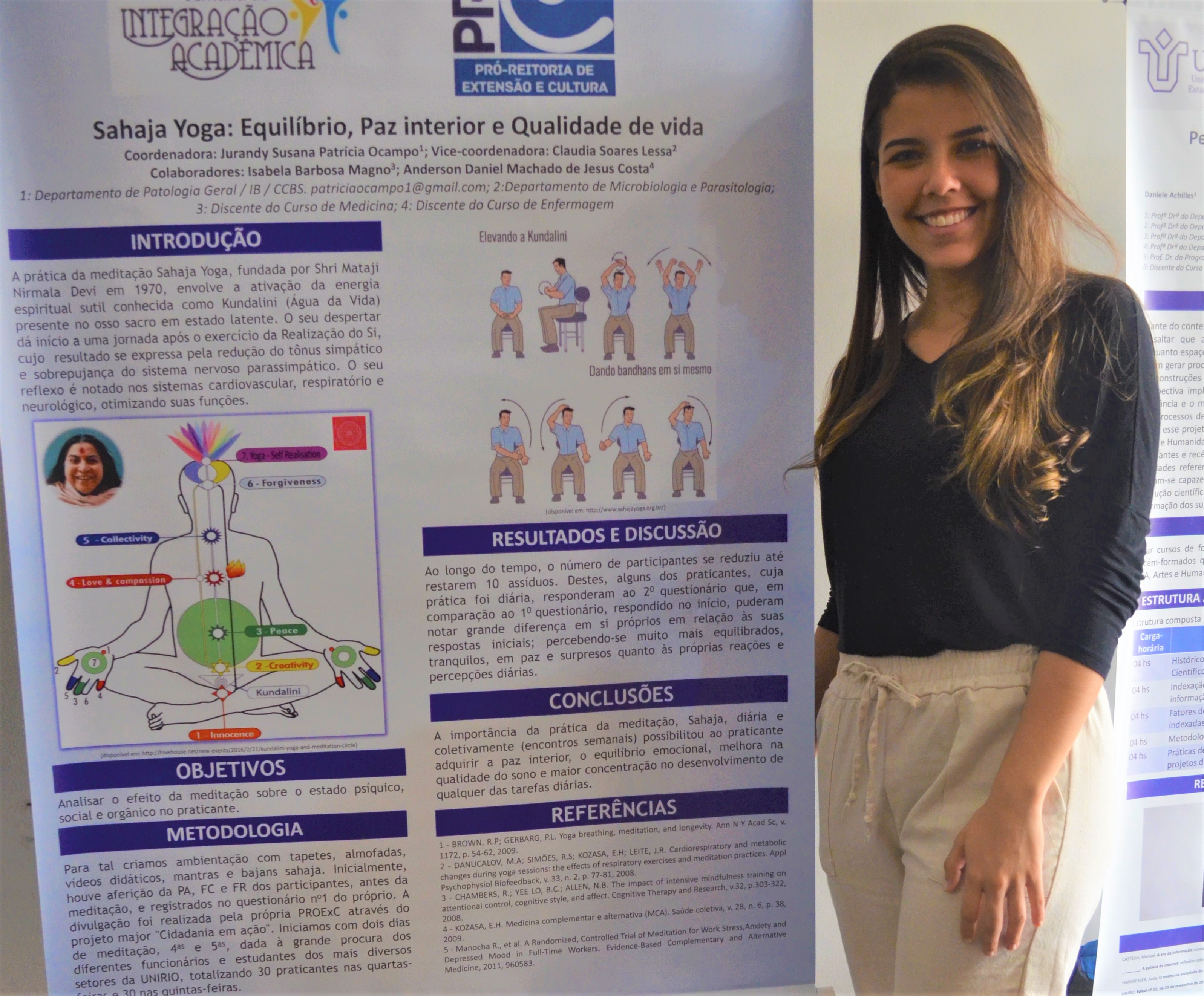 Isabela Magno, estudante do curso de Medicina, durante apresentação de pôster (Foto: Comso)