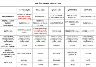 Você está aqui: Página Inicial / Nutrição PRAE(erro) / Cardápios RE PUPO / 04-02 a 08-02-19