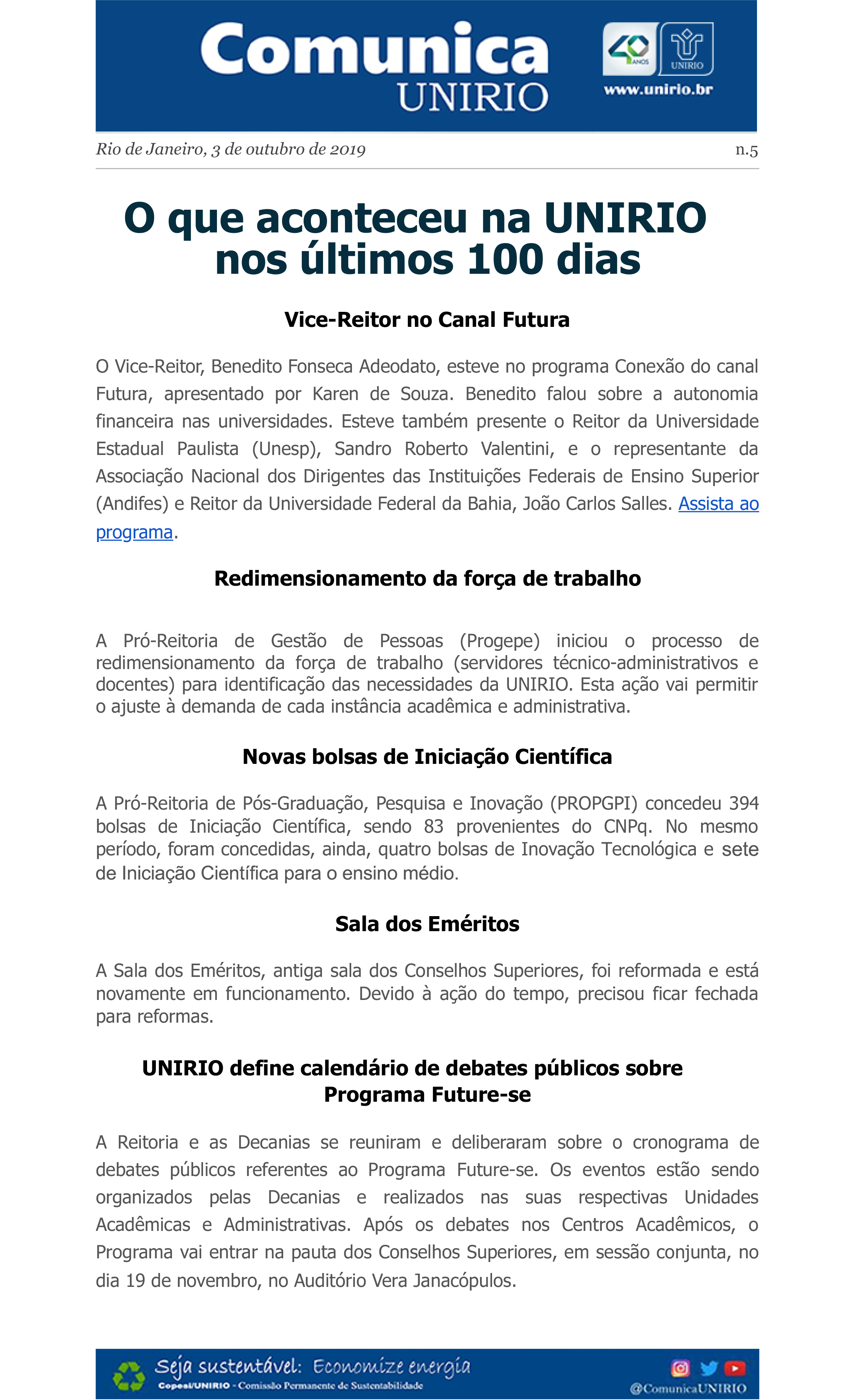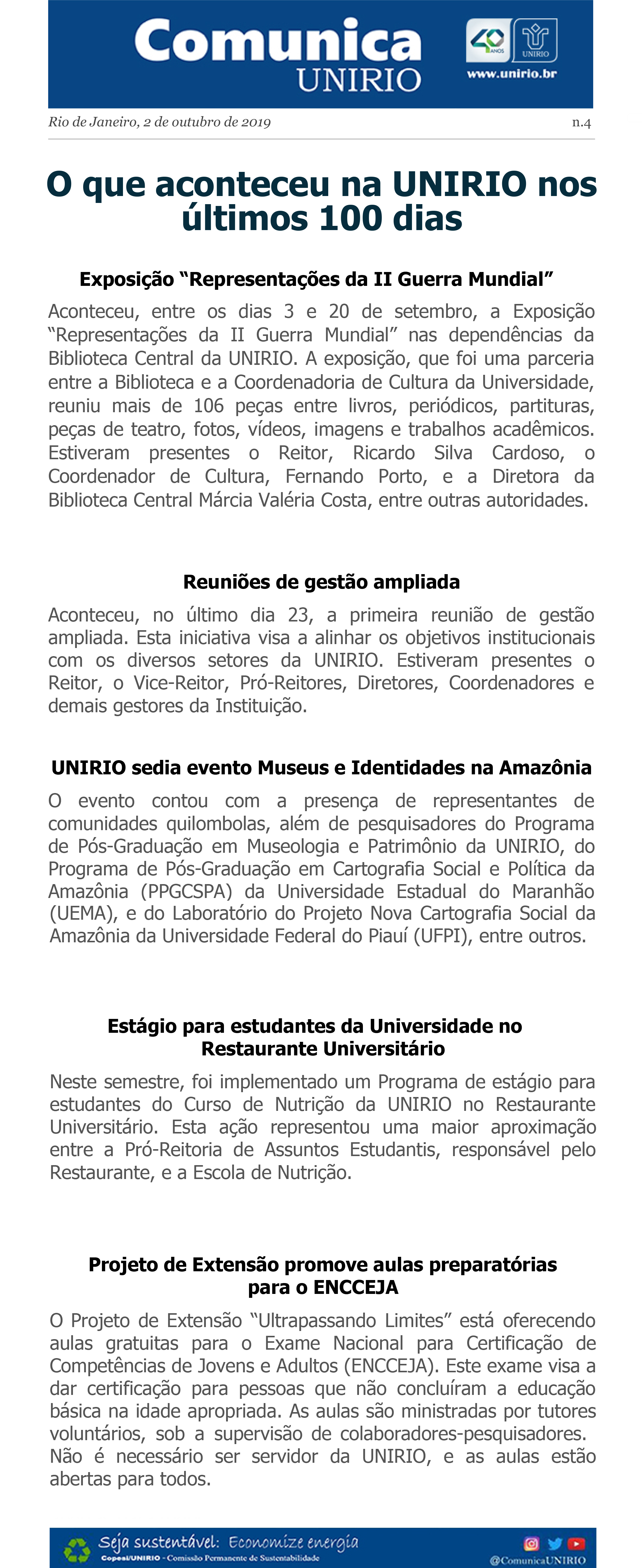 01/10 - O que aconteceu na UNIRIO nos últimos 100 dias - nº3