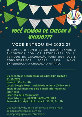 Você, estudante de graduação ingressante de 2022.2, que acabou de chegar à UNIRIO, chega mais!